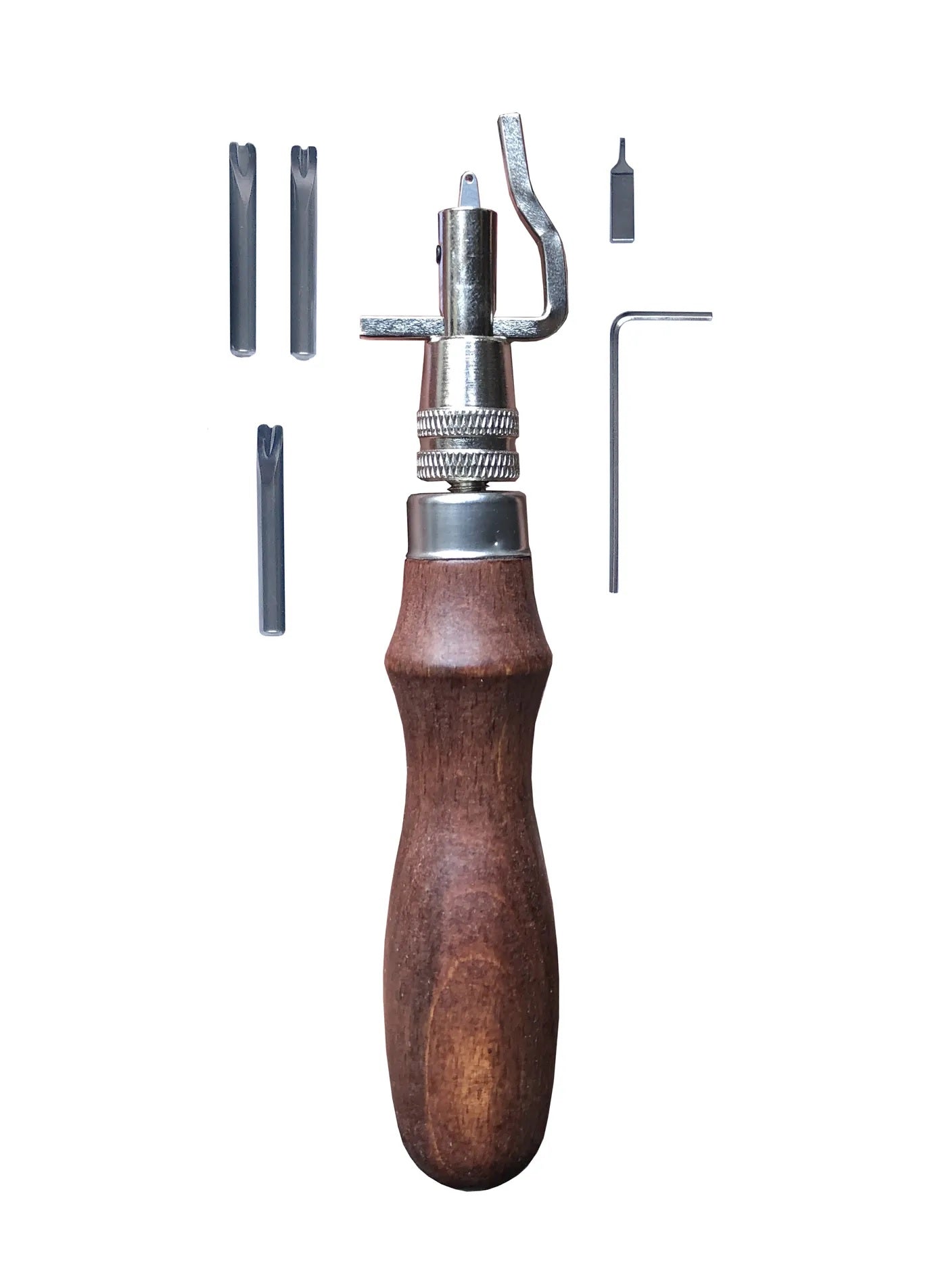 Create stitch grooves with this high-quality stitch groover. Has a wooden handle for maximum grip and comfort and comes with 4 separate end pieces, allowing for precise and beautiful grooves.